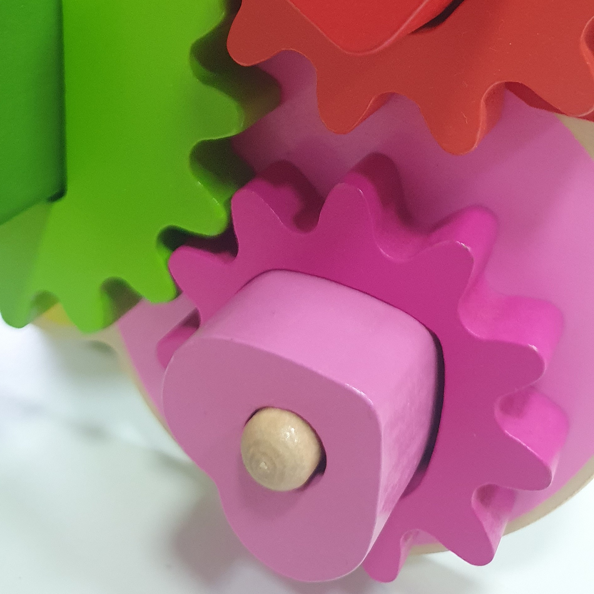 Le papillon d’engrenages est un jeu idéal pour l’éveil de bébé. 5 roues crantées multicolores à positionner au bon endroit sur les piliers en bois. Bébé travaille sa motricité fine, il découvre des formes et couleurs différentes. En actionnant la roue verte, l’ensemble se met à tourner ! Dès 12 mois.